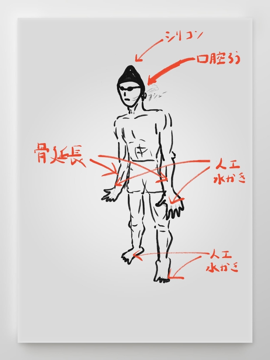 体内にワイヤーをいれて皮膚をびろーんと伸ばして水かきを作ります。